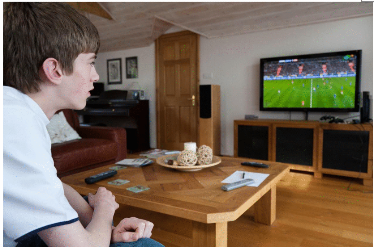 He is watching TV.