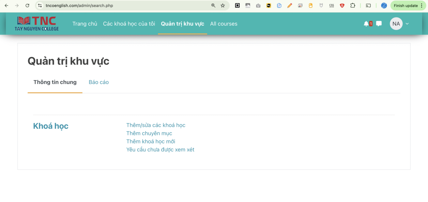 Bước 1. Vào Quản trị khu vực-Thông tin chung-Thêm/sửa các khoá học