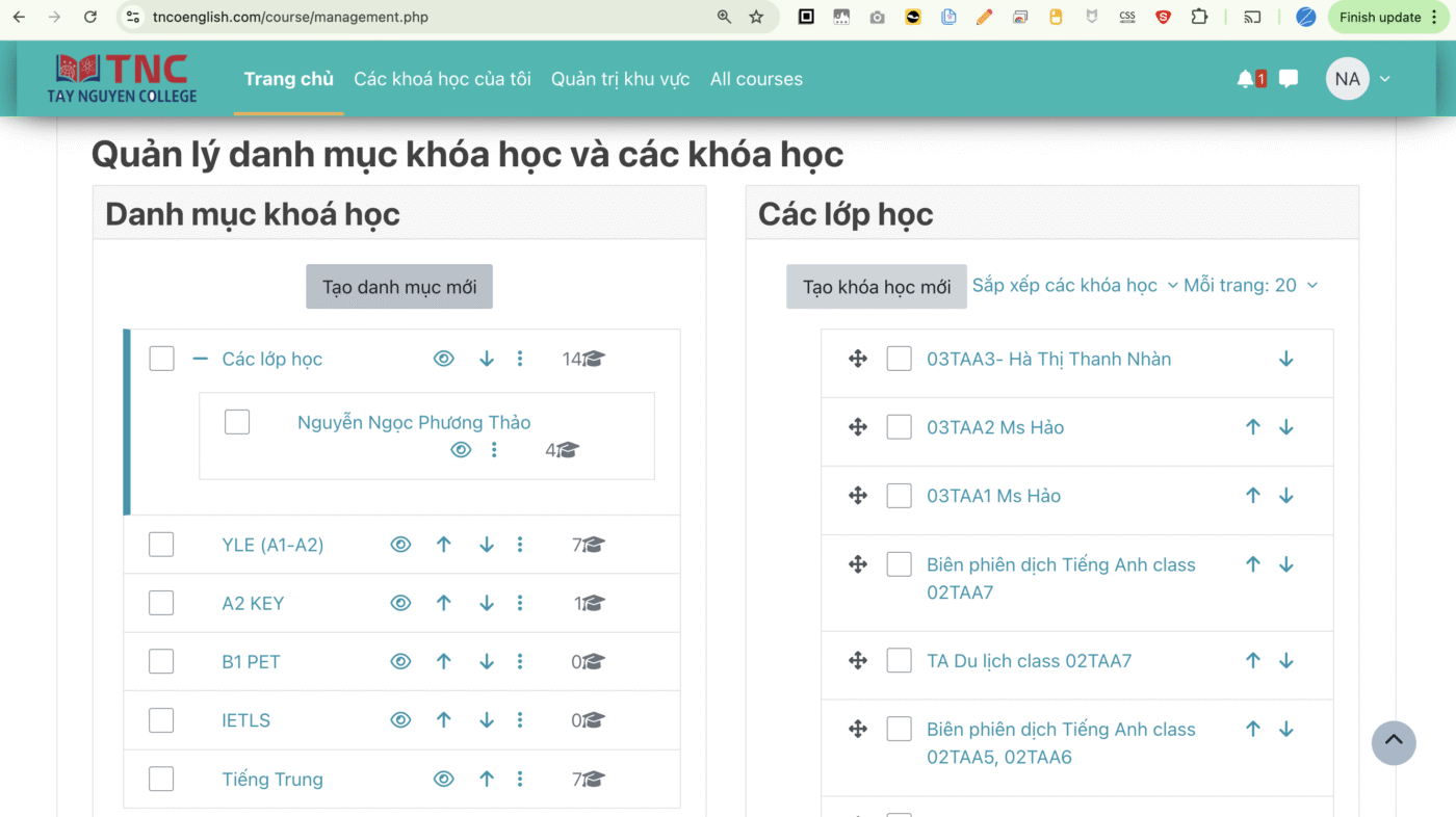 Để sắp xếp các khoá học cho các lớp học riêng, giáo viên cần tạo 1 thư mục ( danh mục)