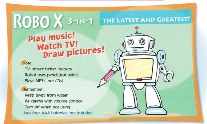 2. My robot needs power, so I ________ put batteries in it to make it work.